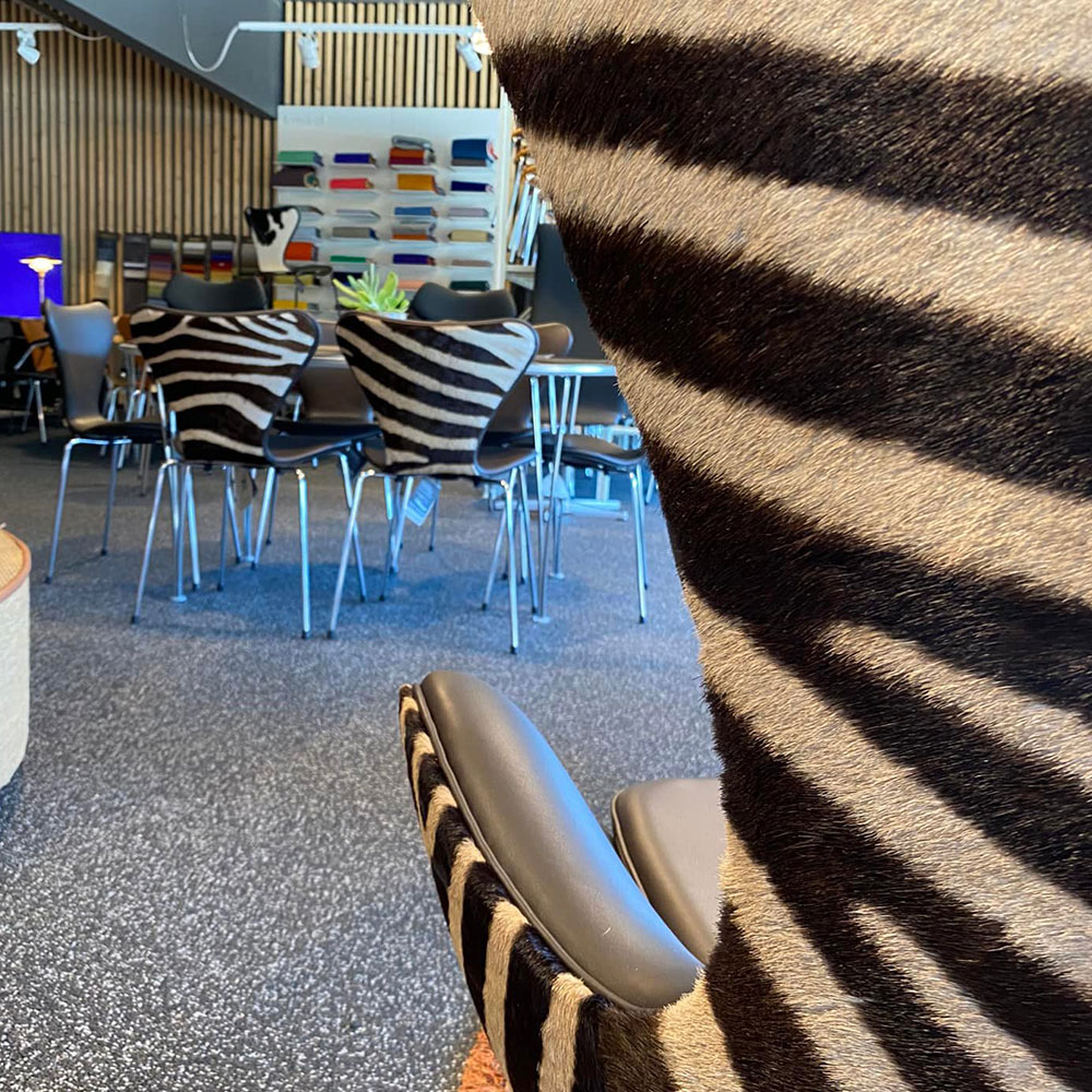 Brugt nypolstret syver stol i elegance læder med zebra ryg.