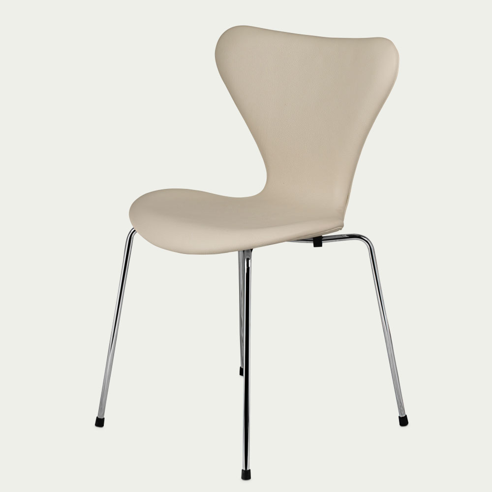 Ny stol produceret af Fritz Hansen. Ombetrukket af Møbelpolstren.dk. Classic eggshell læder.