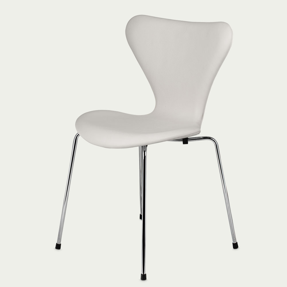 Ny stol produceret af Fritz Hansen. Ombetrukket af Møbelpolstren.dk. Classic hvid læder.