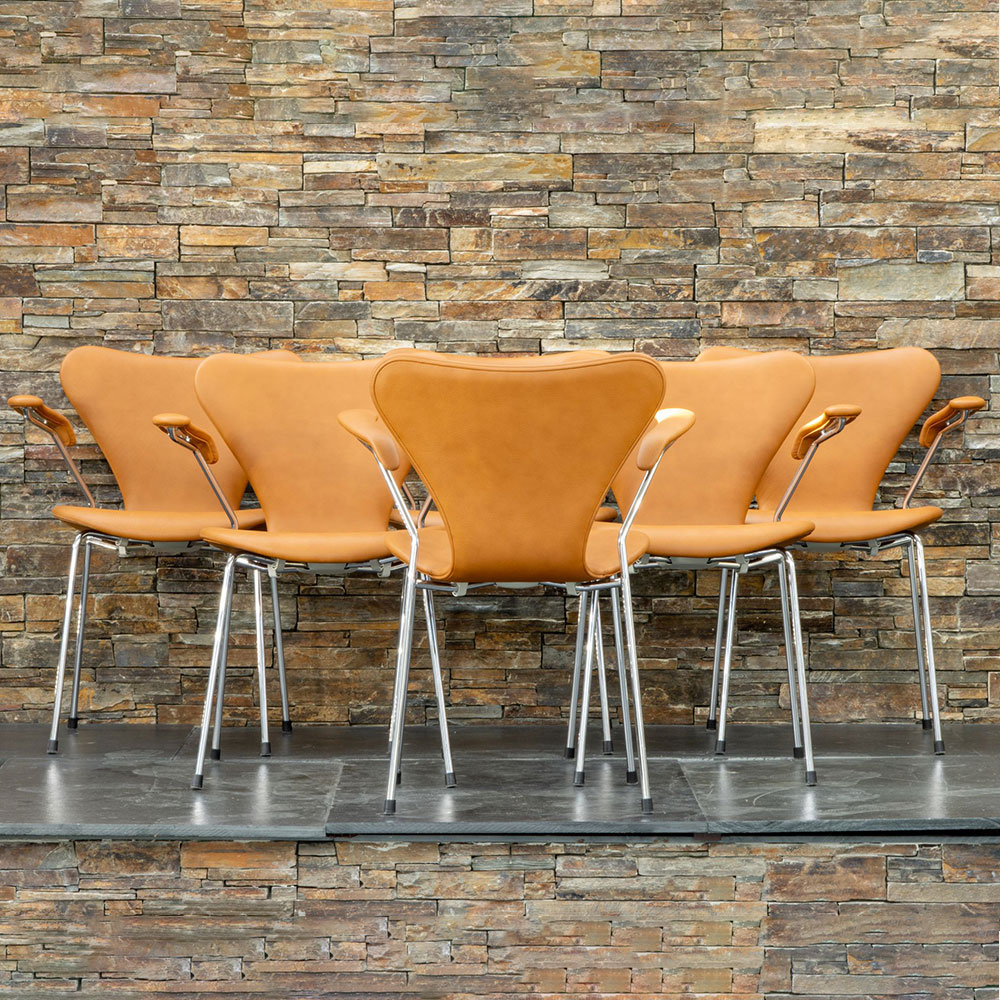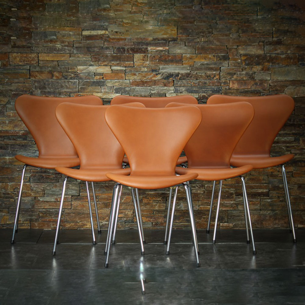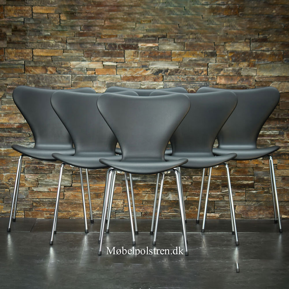 Brugt nypolstret Syver stol. Classic læder i forskellige farver.