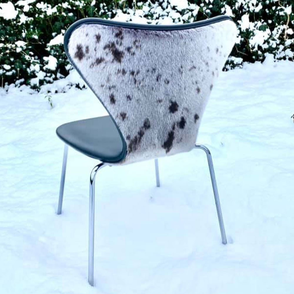 Brugt nypolstret Syver stol. Classic læder med sæl skind ryg.